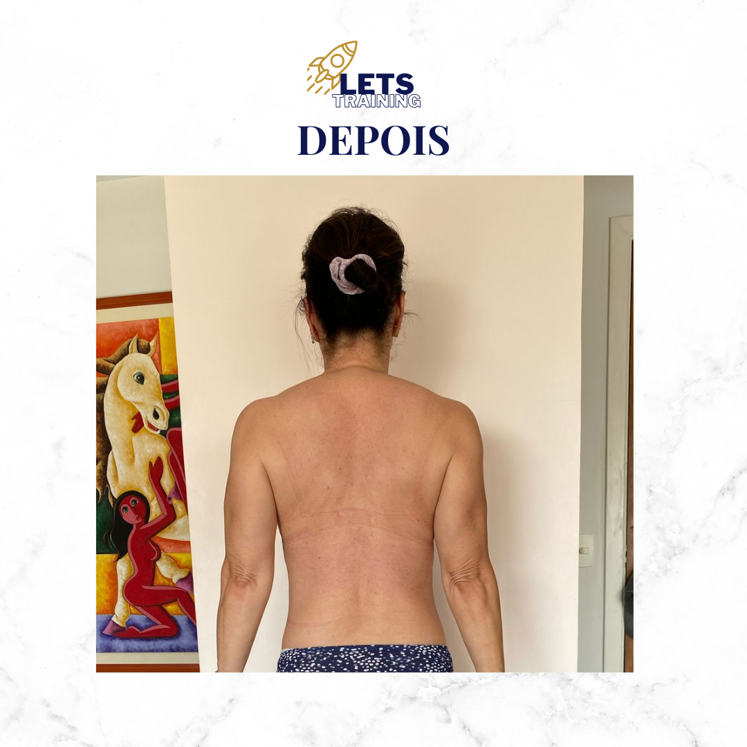 Resultado conquistado com foco na reeducação postural, mobilidade, treino personalizado e acompanhamento próximo.